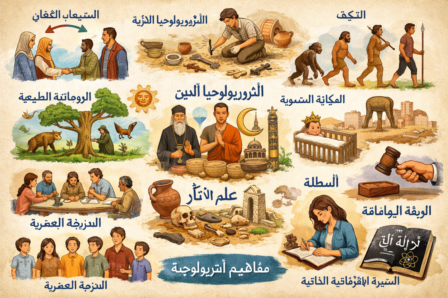 Anthropoarchaeology (الأنثروبولوجيا الأثرية البشرية)دراسة بقايا الإنسان وآثاره لفهم نمط حياته وسلوكه.