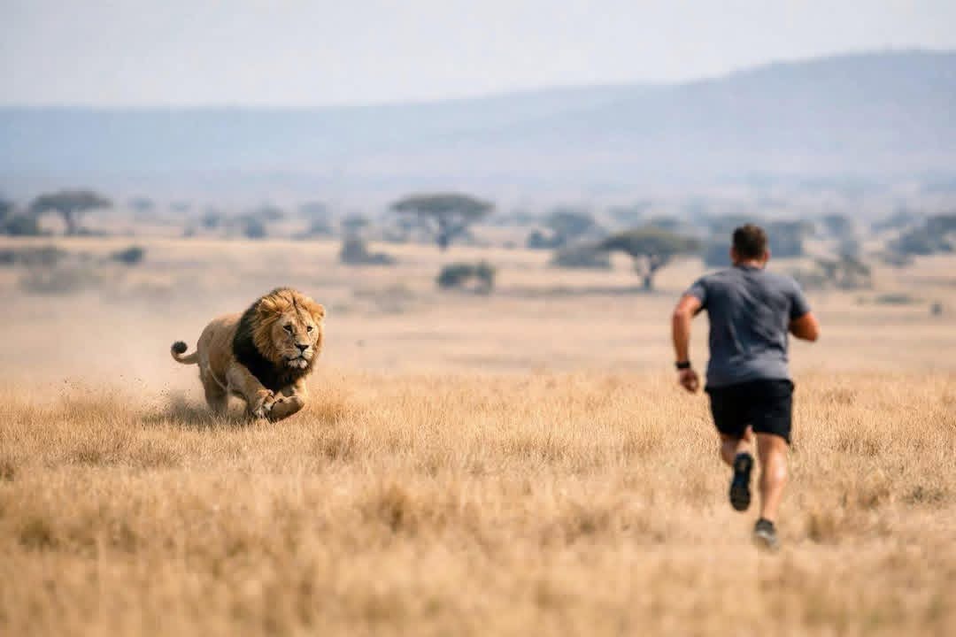 إذا طاردك أسد من مسافة 500 متر.. من يفوز؟