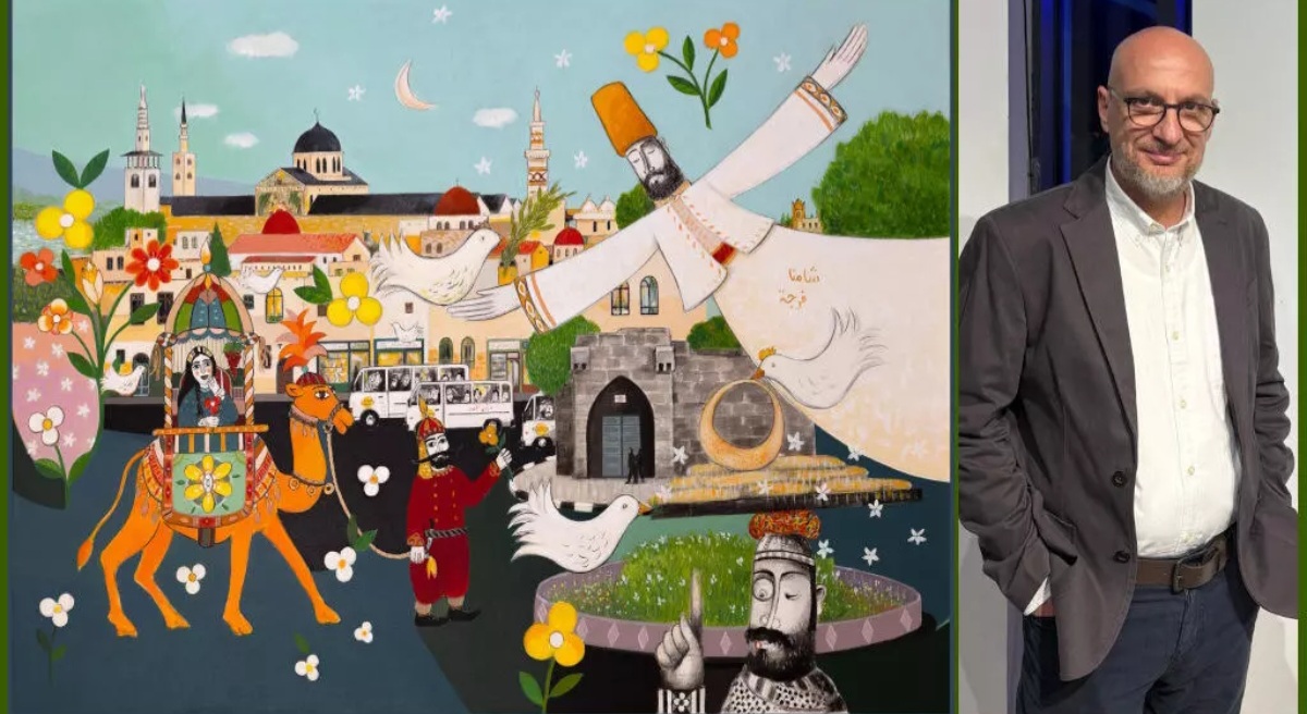 لقاءٌ يتناول الذاكرة والحنين والابتكار ويتحدث عن السخرية بوصفها نبرة حب، وعن دمشق التي تتسع داخل لوحة، ولا تغيب مهما ابتعدت المسافات.