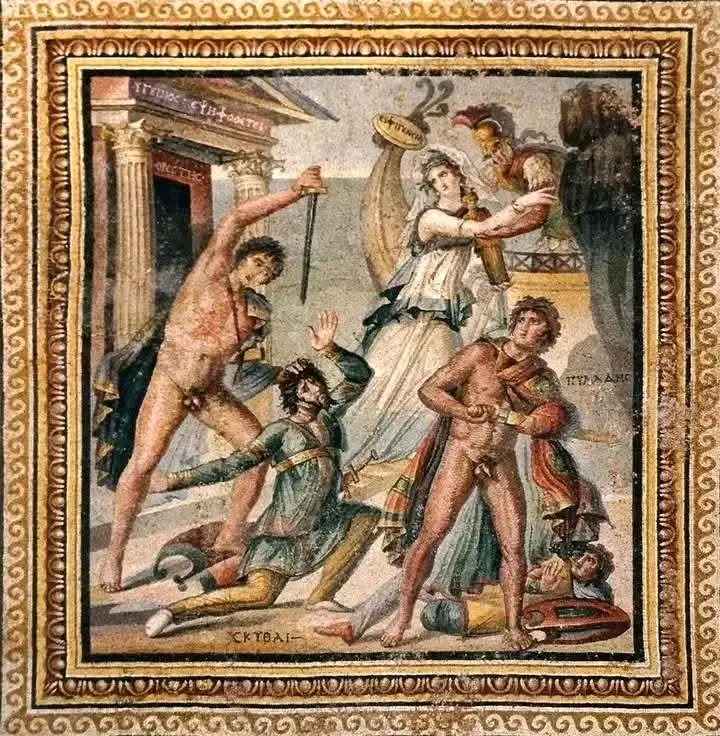 آثار سورية المسروقة موزاييك : إيفيجينيا و أوريستس (إيفيجينيا في توريس)مكان نقب القطعة : سوريا (مجهول المصدر)المالك الحالي : من مصادرات شرطة منهاتن / الولايات المتحدة (مستودع جورج لطفي)التاريخ الزمني : القرن الثالث أو الرابع للميلادبحسب الإختصاصيين : تقدر قيمة” القطعة النقدية بمليونين ونصف دولار”.موضوع المشهد:تبدأ قصة إيفيجينيا في “ميسينا” حيث ولدت في العائلة المالكة، والدها كان الملك “أجاممنون” ، ووالدتها “كليتمنسترا” ، ابنة “تينداريوس” ملك سبارتا السابق. كان لإيفيجينيا عدد من الأشقاء بما في ذلك أوريستس وإليكترا.يحشد اليونان عدة جيشهم للسفر إلى طروادة من أجل القتال إنما تتعطل السفن التي سوف تحملهم في المرافئ بسبب الرياح العاتية فيعود أجاممنون ليستشير العرافين الذين ينبئونه بأن ذلك مرجوعه إلى غضب الإلهة أرتيميس وأنه لإرضائها لابد للتضحية بإبفجينيا ابنته.بحسم الملك قراره فهو الذي انتخبه اليونان ليقودهم في معركتهم ضد طروادة ويقرر تقديم ابنته البكر على مذبح أرتميس. تلتم الناس ليشهدوا التصحية بالإبنة وفي منتصف المشهد يرق قلب الإلهة أرتميس لإيفيجينيا وحيث يهم الكاهن بسكينه على رقبة المسكينة تسجي الإلهة غمامة على رأس الحشد وتستبدل إيفيجينيا بغزال فيسيح دم الغزال عليها بدلا” من دمها ويتوهم ألناس أنها قد قتلت بالفعل. تدرك إيفيجينيا أن الإلهة قد نجتها من الموت وفي مسرحية يوربيديس ، “إيفيجينيا في توريس” تنزل الإلهة عليها طوطم خشبي للربة أرتميس كإشارة منها لها. بعد عدة مداولات تتمكن إيفيجينيا من الهروب إلى “توريس” لتصبح فيما بعد كبيرة كاهنات معبد أرتميس هناك. تمضي على القصة سنوات, ويعود أجاممنون المنتصر من طروادة ليقتل على يد زوجته وعشيقها. وتدور الأحداث ليقوم “أوريستس” الإبن بالثأر لمقتل أبيه من أمه وعشيقها ثم يقرر أوريستس (ألأخ) أن يذهب في أثر اخته بعد أن أبلغته إحدى العرافات بأنها مازالت على قيد الحياة برافقه في رحلته صديقه “بايلاديس” وفي حال وصول الإثنين جزيرة توريس يقبض عليهما من قبل حاشية الملك الذي اعتاد على الضحية بجمبع الغرباء اليونان في بلاده للربة أرتميس. وفي أثناء مراسم التحضير يلتقي الأخ بأخته التي لا تتعرف عليه وهي كبيرة كاهنات المعبد تعرض إطلاق سراح أحد المحتجزين الإثنين إن وافق الأخر على حمل رسالة منها إلى ” ميسينا ” مدينتها الأم وهذا ما حصل فيبقى أوريستس ينتظر موعد إعدامه في حين يسافر “بايلاديس” بالرسالة فيواجه بها وجهاء المدينة بها وليعرف وقتها أن كبيرة كهنة معبد أرتميس في توريس ماهي إلا إبفجينيا إبنة أجاممنون وهي، ولسخرية الأقدار، سوف تقوم بالتضحية بأخيها أوريستس.تكمل القصة في مسرحية يوربيديس، حيث يهم بايلاديس بالعودة إلى “توريس” لإبلاغ إبفجينيا بمجريات الأمور فتقرر الأخيرة الهرب مع أخيها و بايلاديس حاملة معها طوطم أرتميس وهو موضوع التفصيل في أعلى المشهد في لوح الموزاييك هذا.#مشروع_المتحف_السوري_الإفتراضي#الآثار_السورية_في_المهجر#سوريات_Souriat#مجلة ايليت فوتو ارت..
