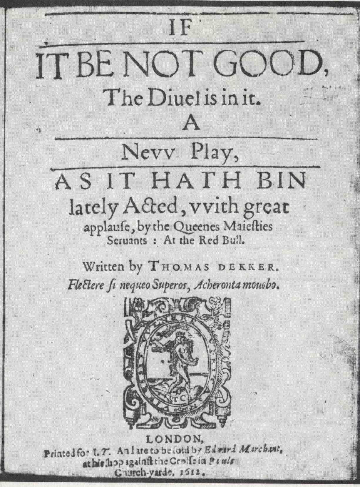 كانت مسرحية (إن لم تكن مسرحية جيدة فلابد أن الشيطان كان بها)تعد مسرحية فاشلة في زمنها .ولقد عرضت في عام1611على خشبة مسرح الريد بول بواسطة فرقة كوين آن وهي ليست فرقة ديكر المعتادة حيث كانت فرقة برينس هنري التي تعرض على مسرح فورتنشن هي التي تقدم أعمال ديكر ولكن على ما يبدو أن الفرقة رفضت قديم المسرحية التي نحن بصددها لأسباب مجهولةأما المصدر الأصلي للمسرحية فهي قصة هولندية تعود للقرن السادس عشر التي كانت شائعة في إنجلترا أيام توماس ديكر وهي تسمى(تاريخ الراهب راش)وهي تحكي عن شيطان تنكر في صورة راهب حتى يجلب اللعنة على البناية المترهبنة بأسرها ,في البداية كانت هناك مسرحية مفقودة لوليم هاتون وجون داي يعود تواجدها لعام1601.