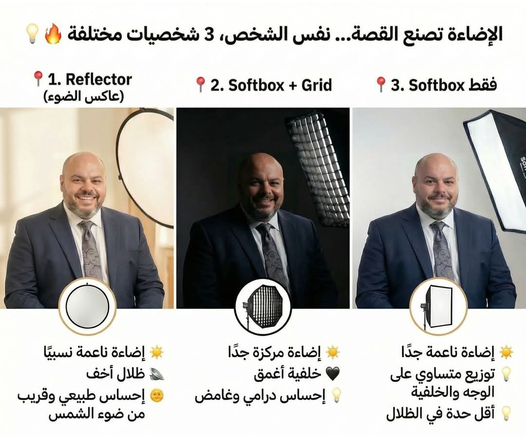 الإضاءة تصنع القصة… نفس الشخص، 3 شخصيات مختلفة 💡🔥