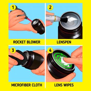 2️⃣ امسح العدسة بـ Lenspen بفرشة ناعمة 🖌️