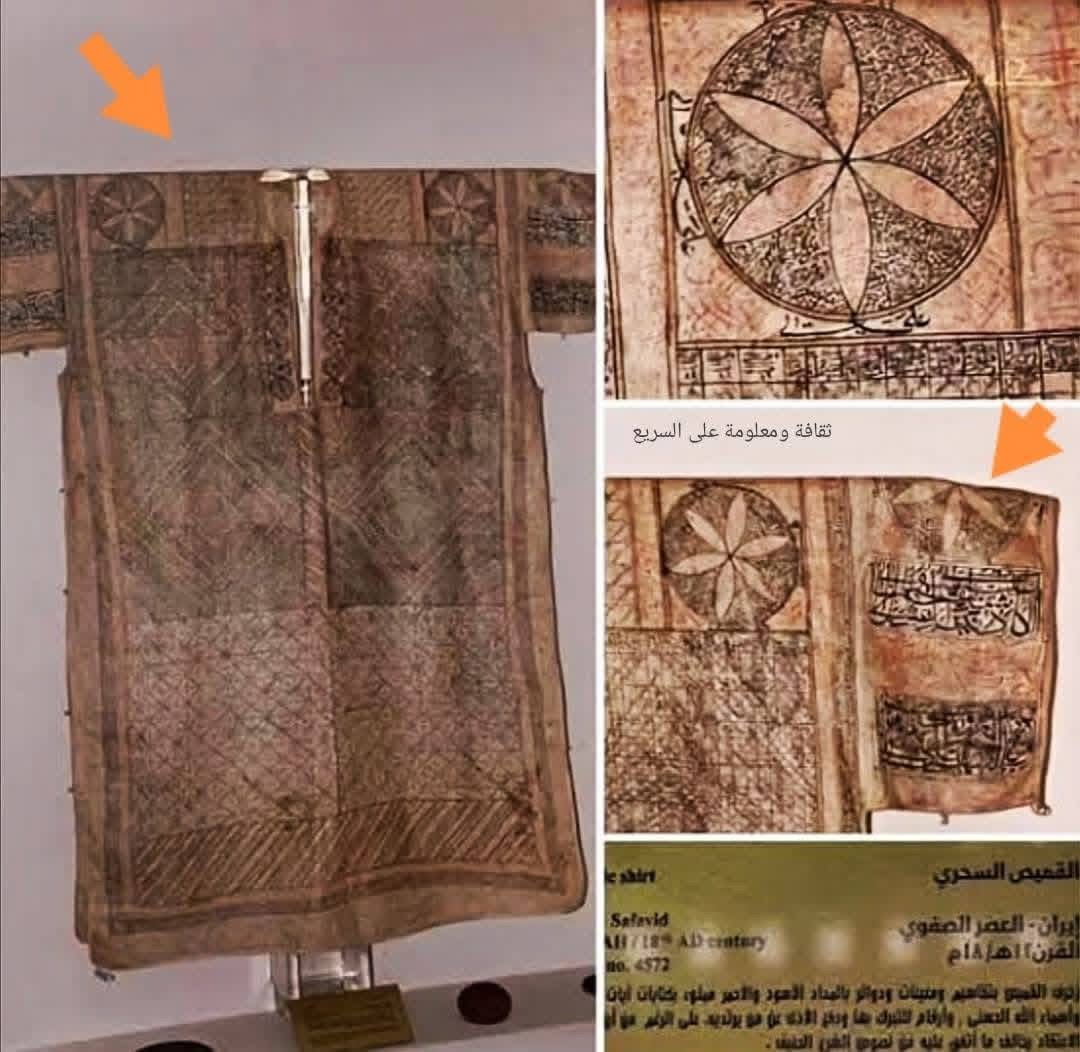 إنه قميص محفوظ اليوم في متحف الفن الإسلامي بالقاهرة، مصنوع من كتان خفيف، تغطيه نقوش يدوية بالغة الدقة. على سطحه تتجاور آيات قرآنية، وأدعية، وأرقام ورموز غريبة، كُتبت بحبرين أحمر وأسود، ضمن ما يُعرف بالكتابات الروحانية النادرة. كان يُعتقد أن هذه الكتابات تمنح مرتديها حماية من الشـ.ـرور والأذى، وكأن القماش درع غير مرئي.