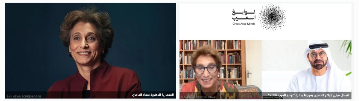وأجرى محمد بن عبدالله القرقاوي، وزير شؤون مجلس الوزراء، رئيس اللجنة العليا لمبادرة “نوابغ العرب”، اتصالاً مرئياً بالدكتورة سعاد العامري، أبلغها خلاله بفوزها بجائزة “نوابغ العرب 2025” عن فئة العمارة والتصميم، منوّهاً بما حققته على مدى أكثر من ثلاثة عقود في صون التراث المعماري العربي وتقديمه إلى الجمهور العالمي بالمشاريع الترميمية والإحيائية من جهة، وبالمحاضرات والوثائق والكتب والمنشورات والأبحاث من جهة ثانية، حتى أصبحت مرجعاً عربياً وعالمياً في مجالها.