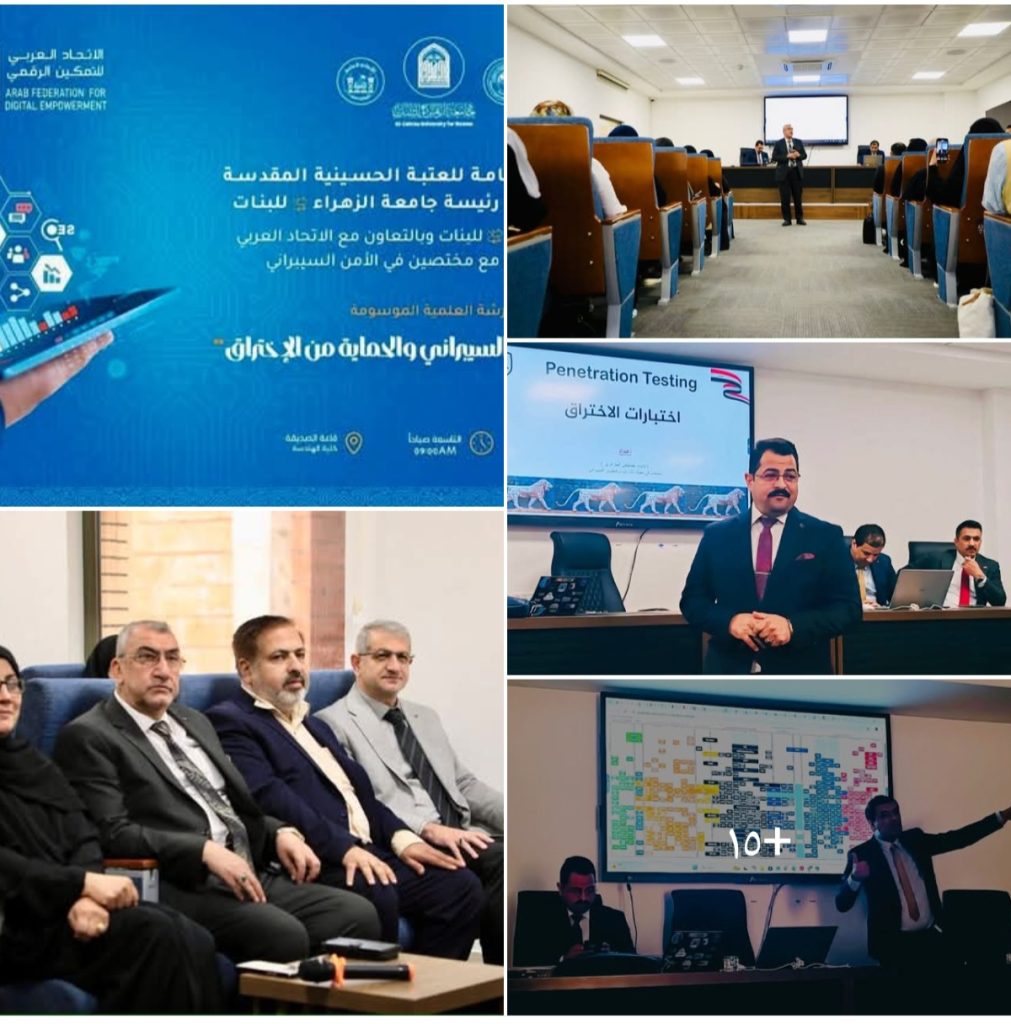 وبرعاية كريمة من الأمانة العامة للعتبة الحسينية المقدسة، أُقيمت في عمادة كلية الهندسة وتكنولوجيا المعلومات التقنية بجامعة الزهراء للبنات الورشة التدريبية الأولى، بمشاركة نخبة من خبراء الفرق الفرعية للاستجابة السريعة لحوادث الأمن السيبراني (SERT)، وذلك تحت عنوان: