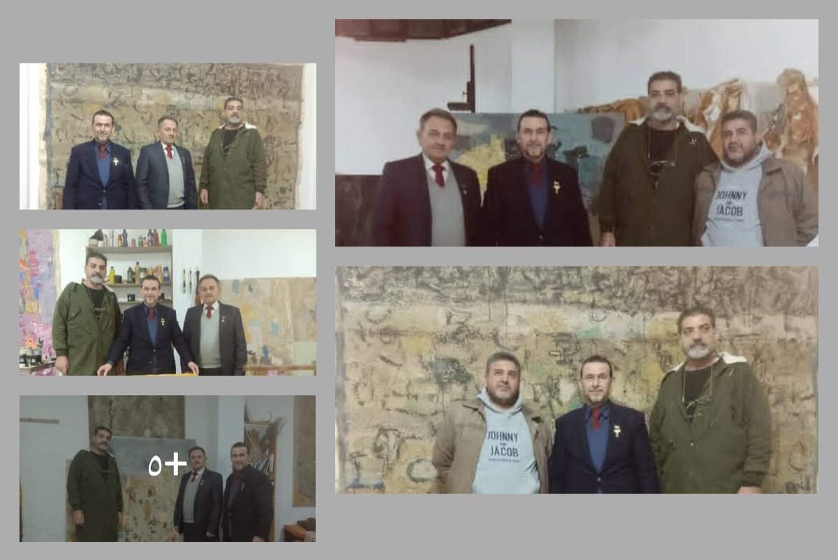 في مشهدٍ تتعانق فيه المحبة مع الوفاء، ويُصغي فيه اللون إلى نبض الحرف العربي وهو يتشكّل، حلَّ وفدُ اتحاد الفنانين التشكيليين في سورية ضيفًا على مرسم ومحترف الفنان التشكيلي صالح الخضر في مدينة طرطوس، في زيارةٍ حملت دفءَ اللقاء وصدق الانتماء للفن وأهله.