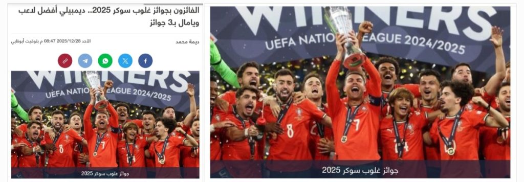 .وفاز منتخب البرتغال بجائزة أفضل منتخب في العالم.جائزة غلوب سوكر لأفضل لاعب وسط في العالم 2025