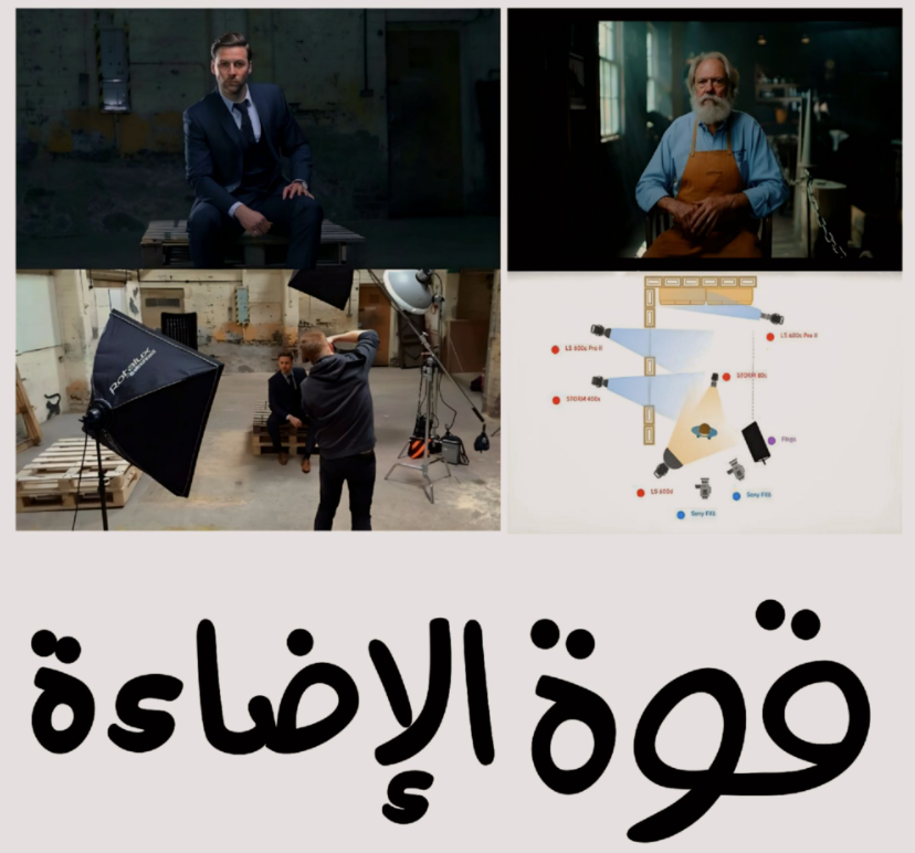 - Fill Light: بيكسر الظلال القاسية ويوازن الكادر.