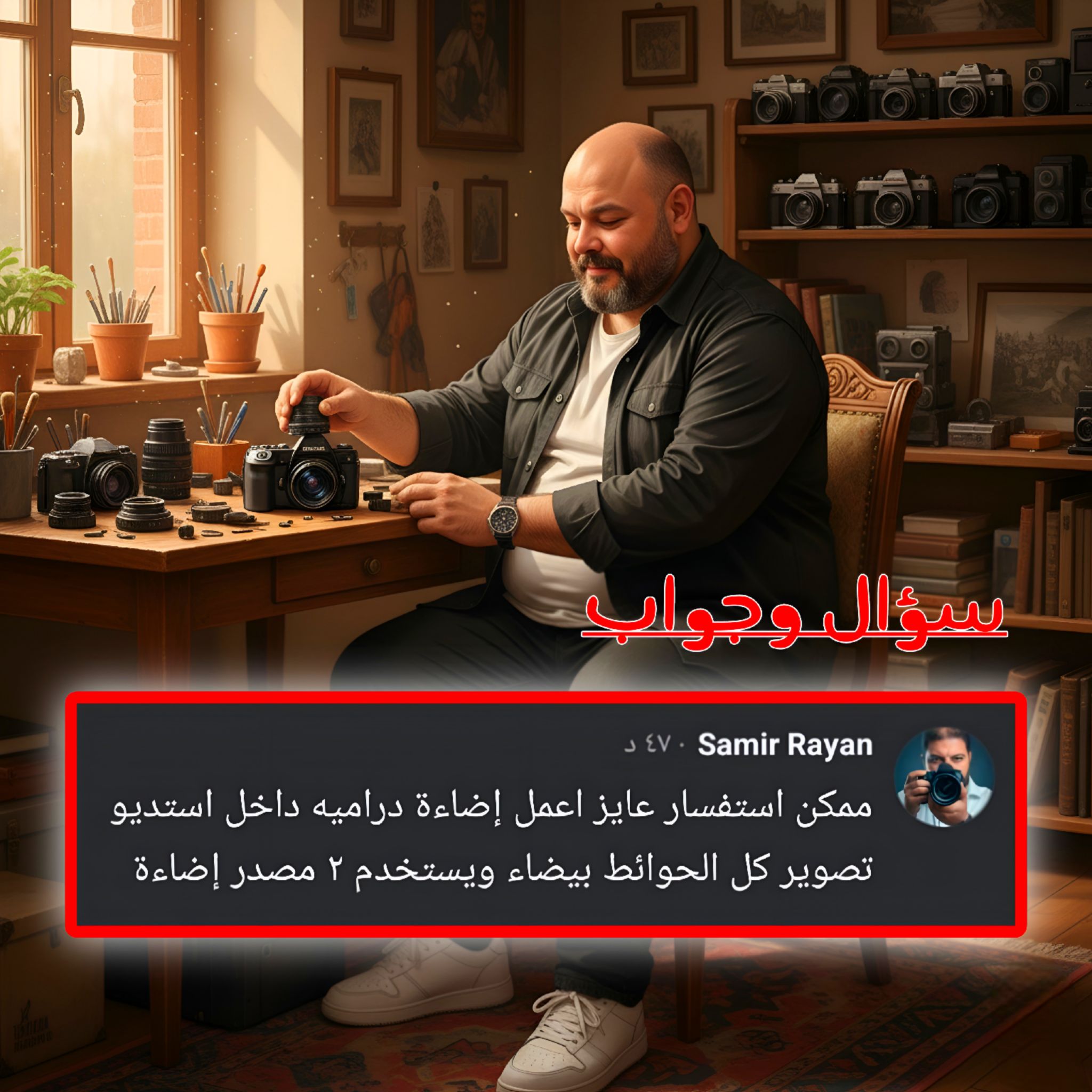 الاستديو الأبيض دايمًا بيبان “مفلطح” وممل بسبب انعكاس الضوء من كل اتجاه. لكن بمجرد ما تتحكم في اتجاه الضوء وتمنع الارتداد، تقدر تحوّل المشهد لقطعة سينمائية مليانة دراما. 🎭🔥