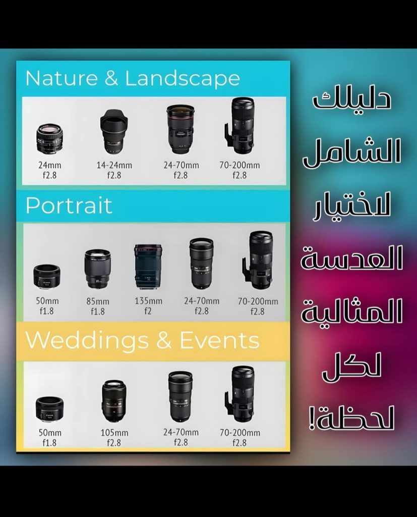العدسة المثالية لكل لحظة.دليلك الشامل لإختيار عدسات المناسبة للطبيعة والبورتريه والزفاف