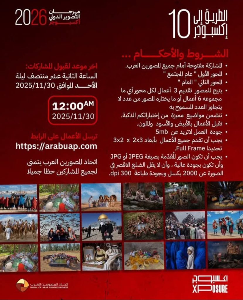 معرض الطريق إلى اكسبوجر 10ضمن فعاليات مهرجان التصوير الدولي أكسبوجر – 2026م.بإشراف: إتحاد المصورين العرب.