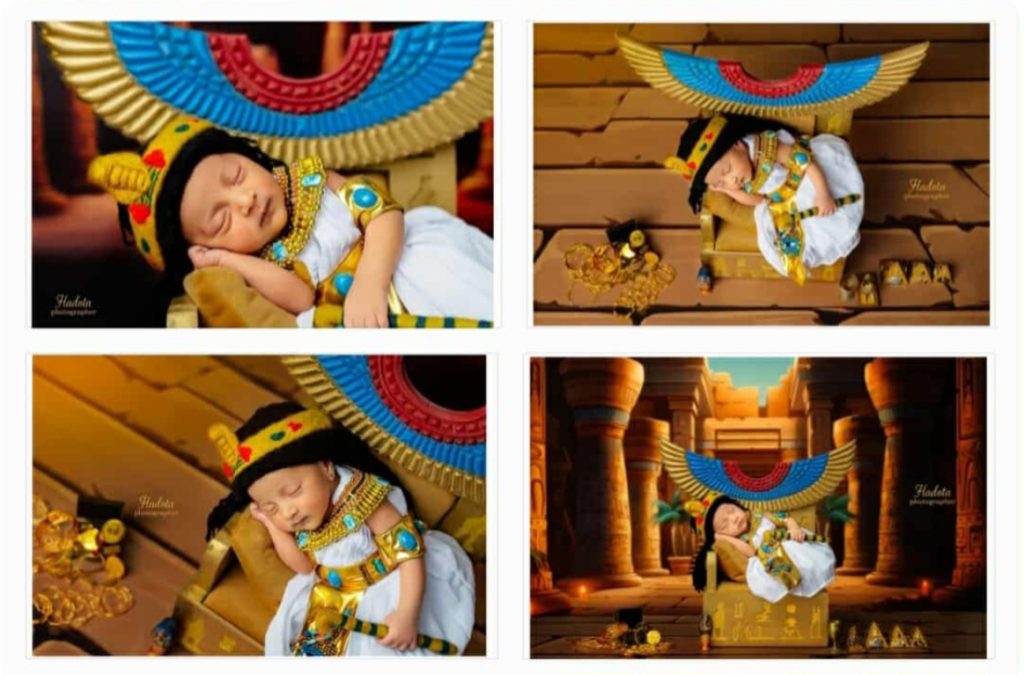 المصور المصري:محمد عبد الباسط الشهير بـ”حدوتة” عمل”فوتو سيشن” لرضيعة بالملابس الفرعونية. بالإستعانة بالمتحف الكبير.