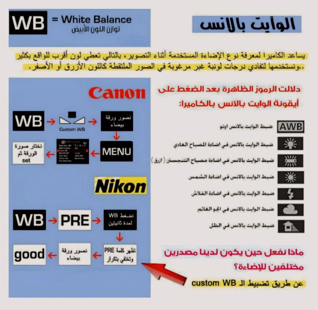 تغيير إعدادت الكامير ( White Balance | WB ) .الوايت بلانس ..كبسة زر واحد تقدر تنقذ ألوان صورك من الكارثة – مشاركة المشمهندس: محمد حسن.