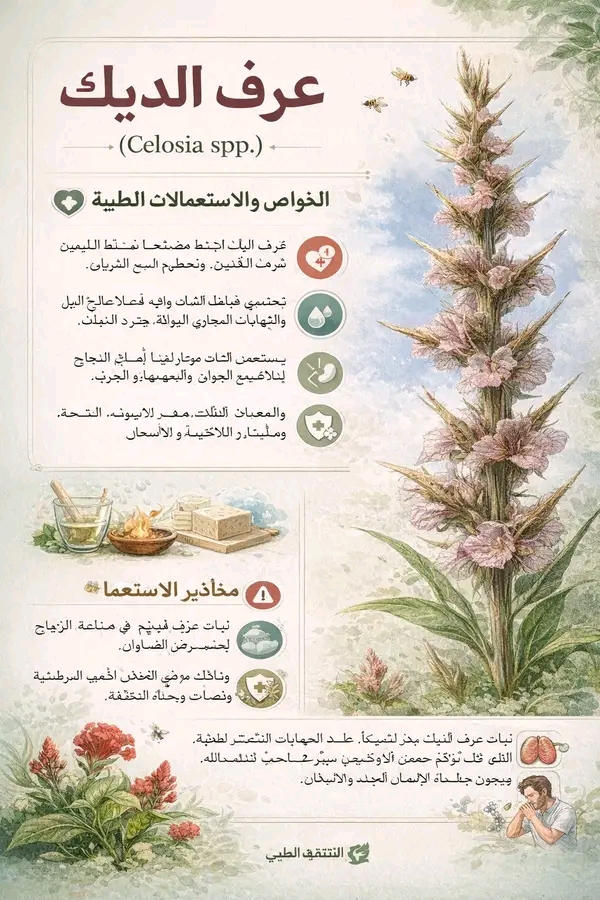 عُرف الديكاو الحاذي الشوكي (Prickly Saltwort)، المعروف علميًا باسم Salsola kali أو Salsola tragus. الخواص والاستعمالات الطبيةتُعدّ عشبة عُرف الديك من النباتات الطبية التي استُخدمت تقليديًا في عدد من الأنظمة العلاجية الشعبية، لما تحتويه من مركبات فعّالة ذات تأثيرات دوائية متعددة.إذ تحتوي على قلويدات من بينها السالولين، والذي أُشير إلى دوره في خفض ضغط الدم […]