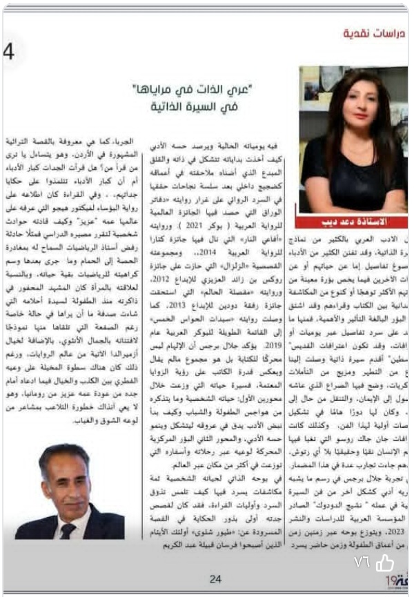في السيرة الذاتية.”عري الذات في مراياها”.بالغرفة 19- بقلم الناقدة: دعد ديب.