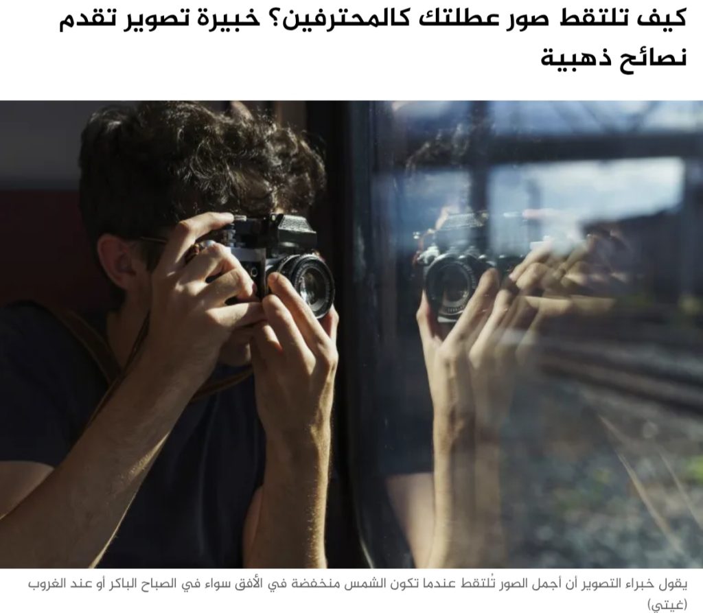 كيف تلتقط صور عطلتك كالمحترفين؟ خبيرة تصوير *تقدم نصائح ذهبية: يقول خبراء التصوير أن أجمل الصور تُلتقط عندما تكون الشمس منخفضة في الأفق سواء في الصباح الباكر أو عند الغروب (غيتي)كثيرا ما يسعى المرء خلال عطلته إلى التقاط صور مميزة تبقى شاهدا على اللحظات الجميلة وتتحول إلى ذكريات خالدة. ولتحقيق ذلك، قدّمت جودي هوهمان، من […]