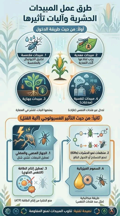 تختلف طرق تأثير المبيدات الحشرية على الآفات المستهدفة بناءً على تركيبتها الكيميائية وكيفية دخولها إلى جسم الحافة. فهم هذه الآليات يساعد في اختيار المبيد المناسب وتحقيق أفضل النتائج في المكافحة.فيما يلي تصنيف للمبيدات حسب طريقة العمل (Mode of Action):أولاً: من حيث طريقة دخول المبيد إلى الآفةمبيدات ملامسة (Contact Insecticides):تخترق جسم الحشرة بمجرد ملامستها لسطحها الخارجي […]