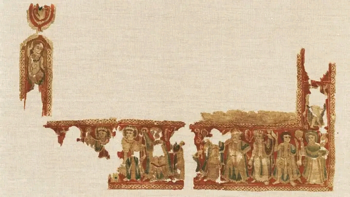 قطعة من إطار للوحة قماشية ،من المنسوجات البيزنطية الشرقية المنتشرة في سوريا ومصر في القرون الأولى للمسيحية.