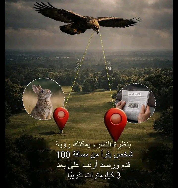رؤية النسر هي الأقوى في المملكة الحيوانية، حيث يرى الأشياء بوضوح يفوق الإنسان بـ 4 إلى 8 مرات، ويستطيع تحديد فريسة صغيرة من بعد أكثر من 3 كيلومترات. يرجع ذلك لامتلاكه شبكية كثيفة الخلايا (مخاريط وعصي) وعيون ضخمة، ما يوفر رؤية ملونة دقيقة جداً للألوان والأشعة فوق البنفسجية. إليك كيف يرى النسر الأشياء:. بصر خارق […]