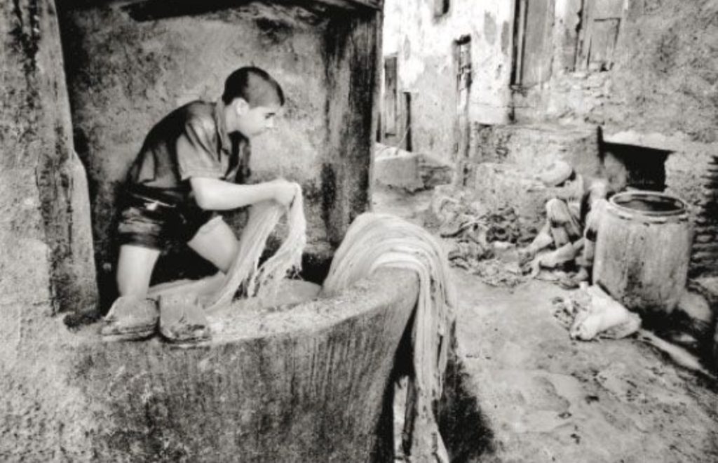 للمصور: عيسى إبراهيم،صورةٌ لصبيٍ يعمل بصناعة الجلود بمدينة فاسٍ المغربية،التي شاركها بالدورة 16من مهرجان الصين الدولي لفن التصوير الضوئي عام 2014م.