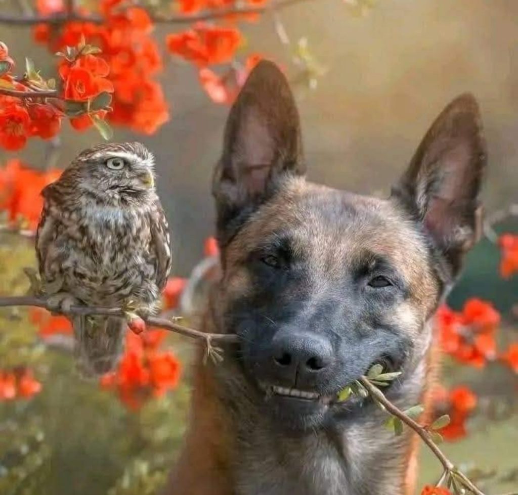 صور الكلب وطائر الباشق. علاقة حميمية بجلسة تصوير غريبة وجميلة