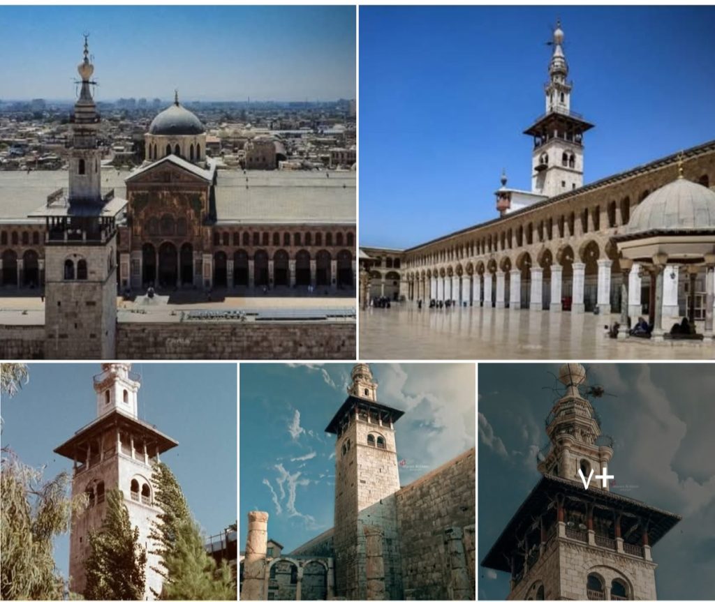 أولى المآذن الإسلاميّة ( مئذنة العروس ).وواحدة من أجمل المآذن المميزة بتكويناتها المعمارية، وثالث مآذن الجامع الاموي بدمشق.- مشاركة: د.”عبد القادر الريحاوي.