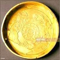 كانت هذه الآنية الذهبية بقطرها البالغ تسعة عشر سنتيمترًا أكثر من مجرد وعاء ثمين كانت حكايةً مصوغةً من نورٍ أصفر خرجت من قلب الأكربول من حرم معبد أوغاريت في ثلاثينيات القرن الماضي لتشهد على ذائقة مدينةٍ عرفت كيف تحوّل المعدن إلى ذاكرة.على سطحها المستدير يتوالى المشهد كأنه شريطٌ سرديّ غزلانٌ بريةٌ في اندفاعها الخفيف أجسادها […]